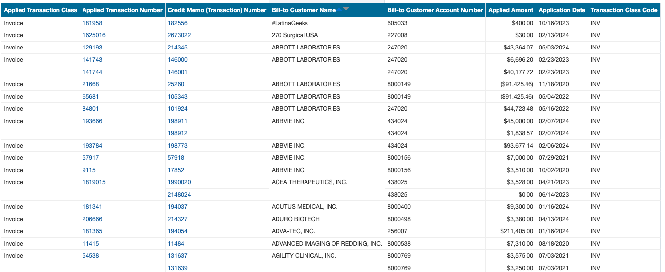 - List of Transactions against which Credit Memo was applied