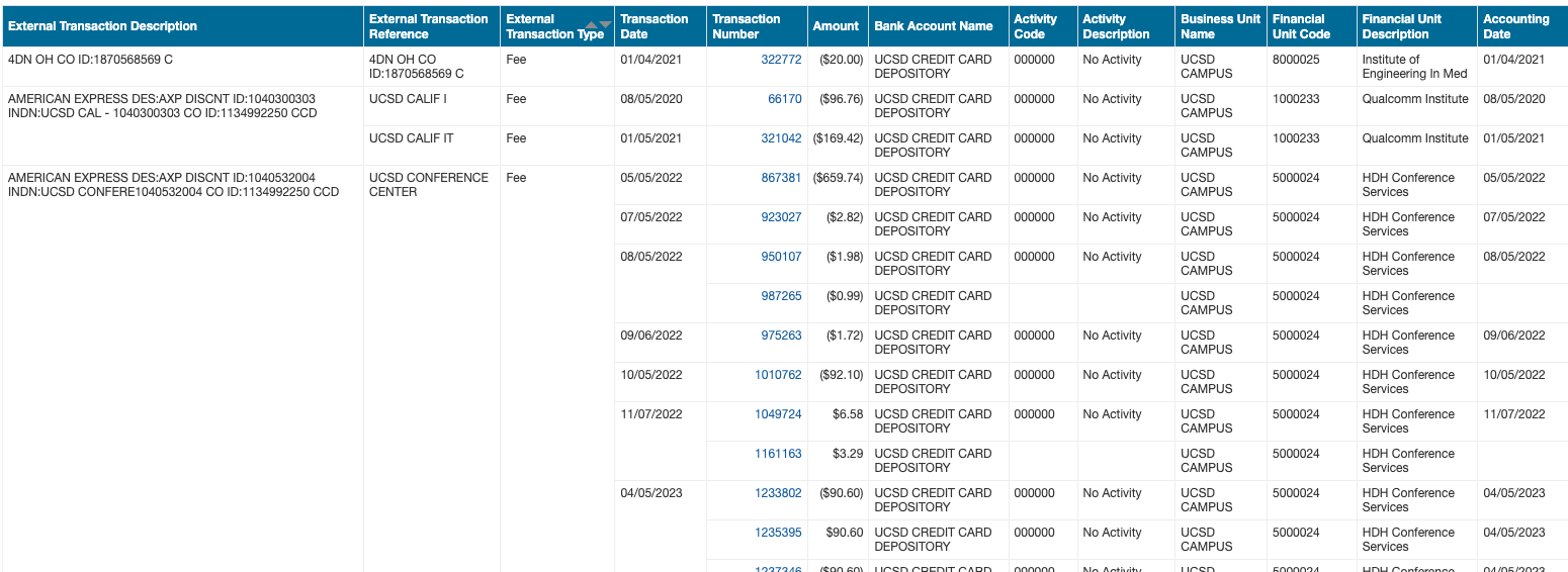 - Provides subledger detail transactions to assist with credit card reconciliation
