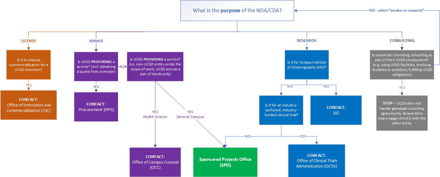 UCSD CDAs must be executed by a central office with signature authority. OCGA manages CDAs for research and incoming services (UCSD is paid to perform a service) only.